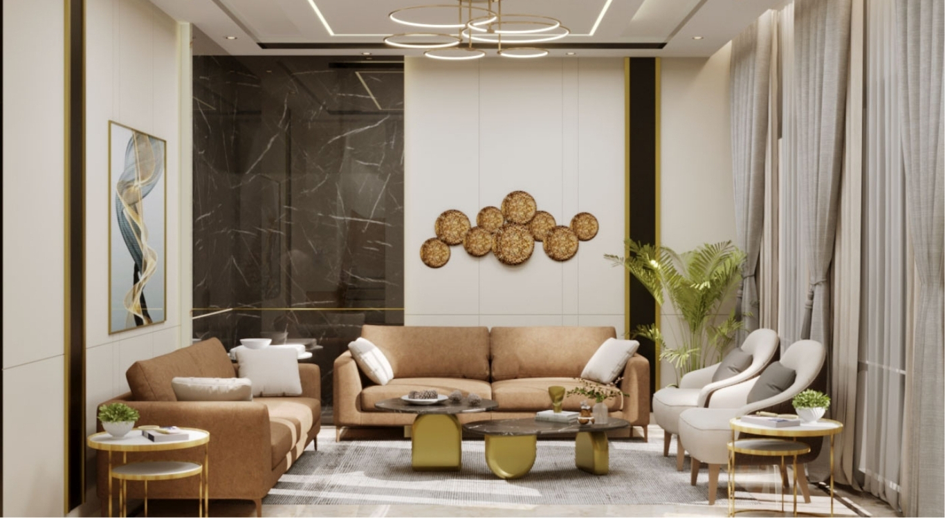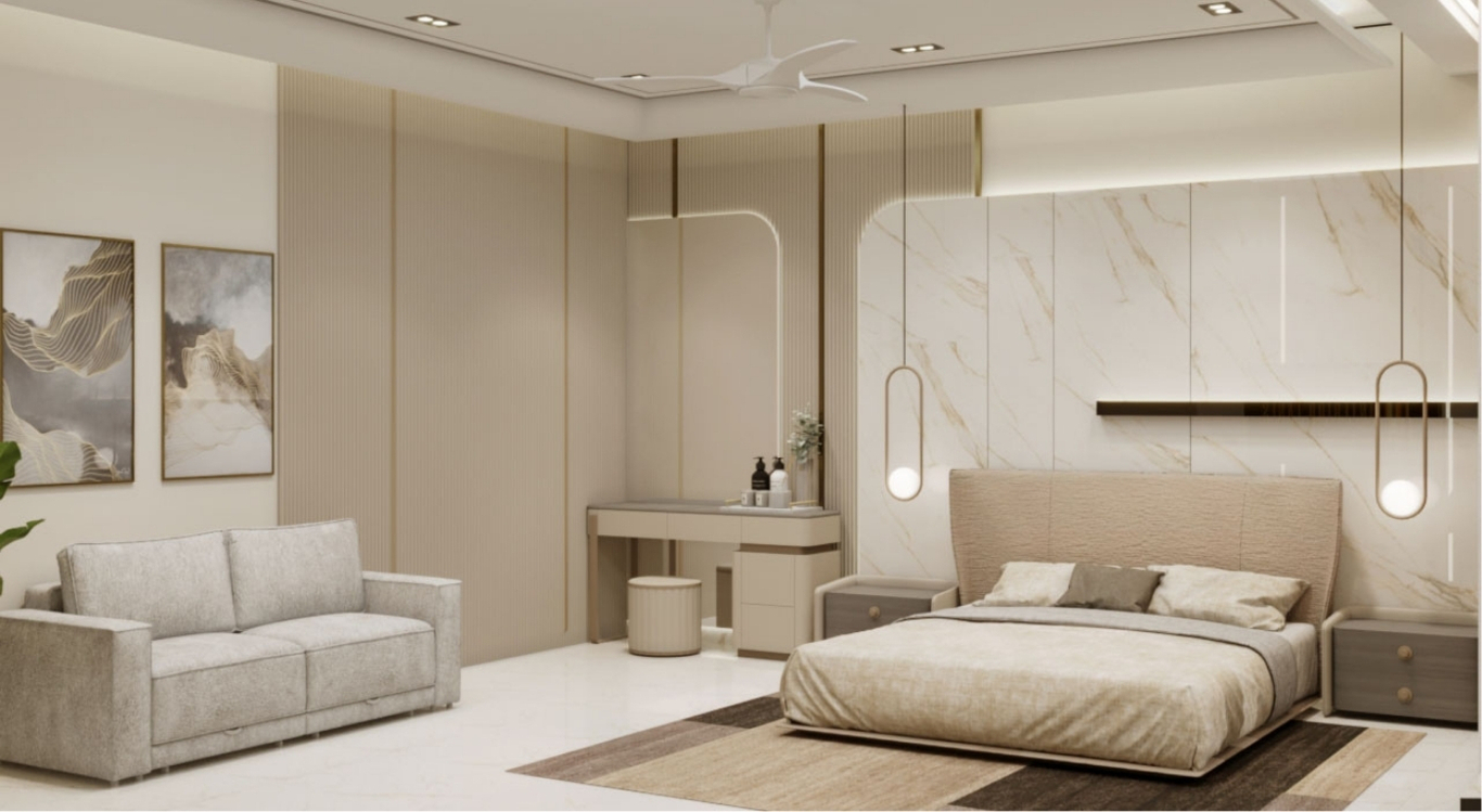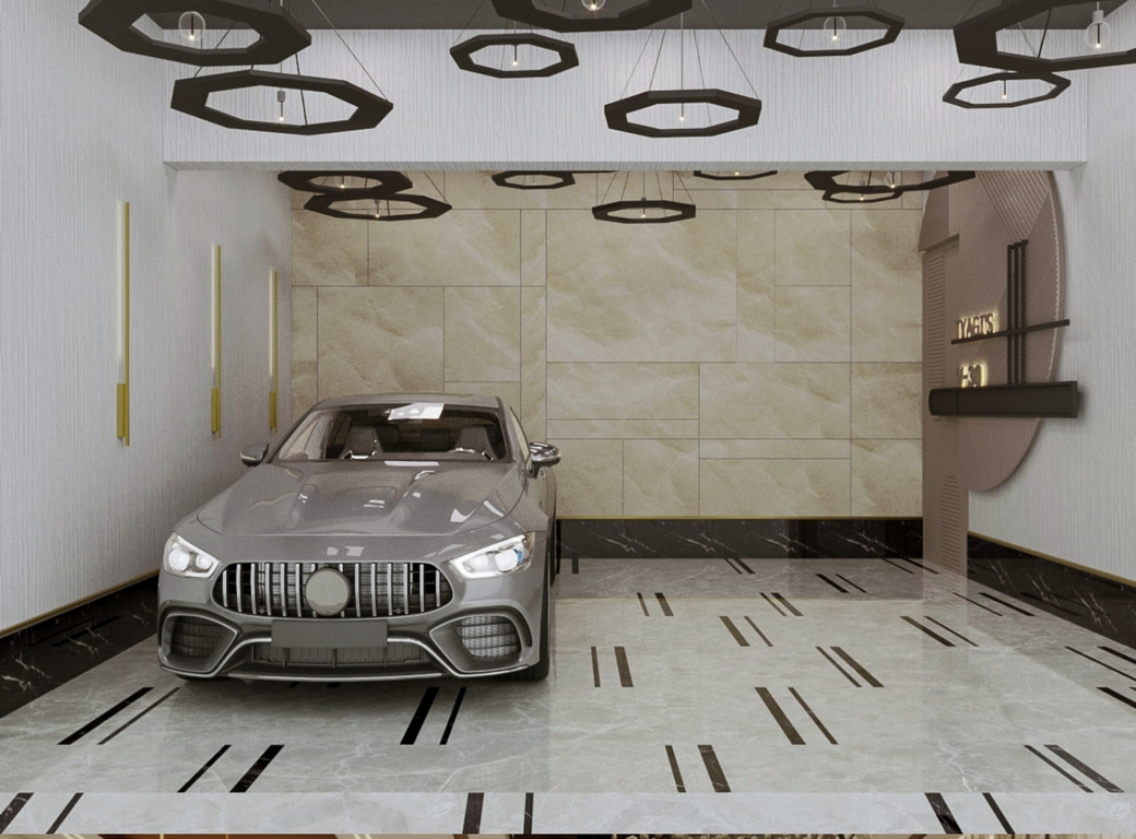 This residential project showcases a seamless fusion of contemporary elegance and functional design, transforming every corner into a sophisticated yet livable space. The entrance sets the tone with its clean lines, geometric lighting fixtures, and polished stone surfaces that exude understated luxury. The parking area follows suit, maintaining a sleek, modern aesthetic with ample lighting and uncluttered layouts that reflect a refined approach to utility spaces.